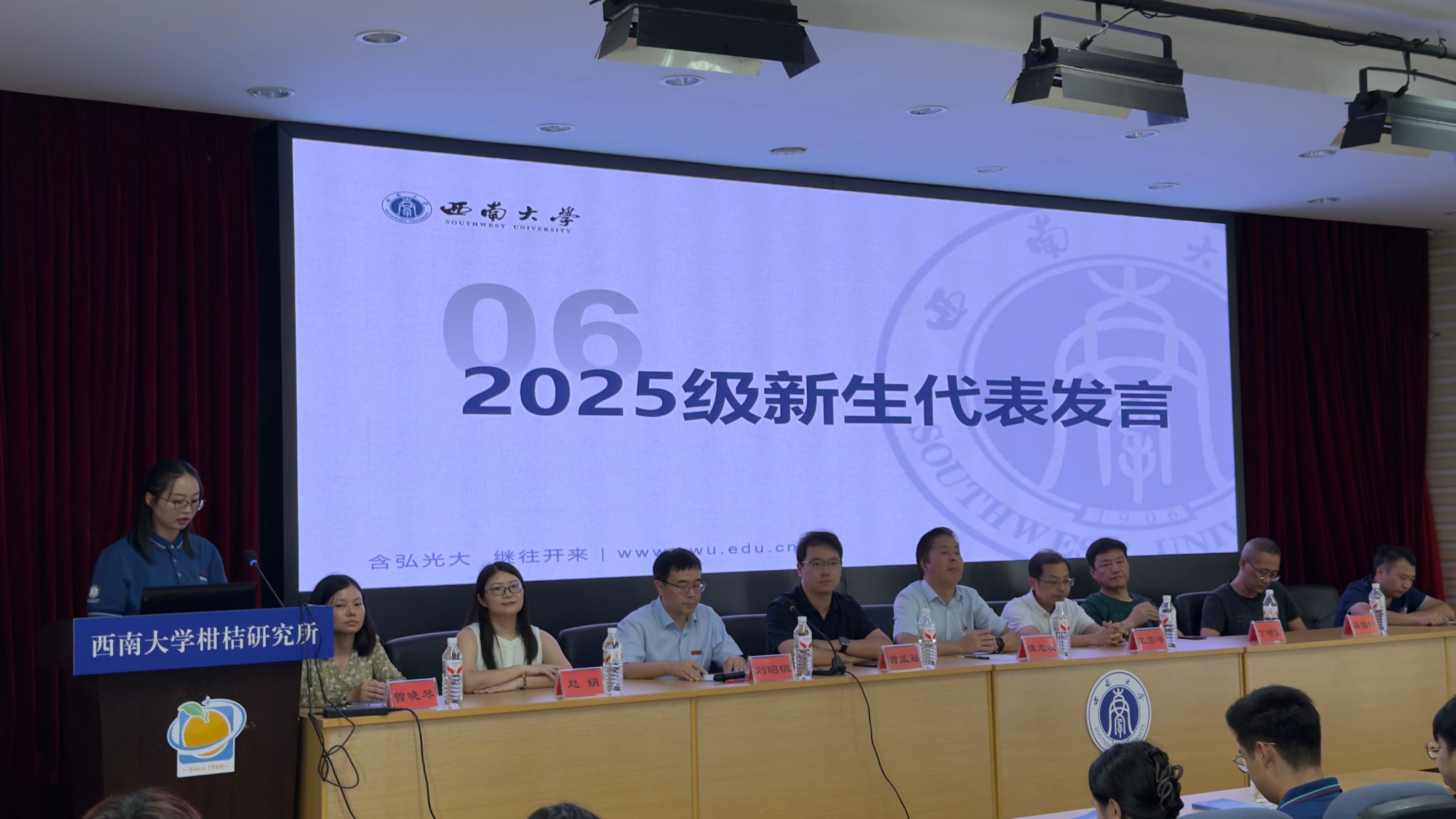 2025级博士研究生陈琪代表新生发言,她以“种子”为喻,表达了科研初心:“我们如同一颗颗播撒在柑研所沃土中的种子,前路或许并不平坦,但只要秉持务实态度,终将绽放出属于自己的科研之花。”她呼吁大家铭记“壹志嘉树,修远求索”的所训,砥砺前行,为柑桔产业的高质量发展贡献力量。