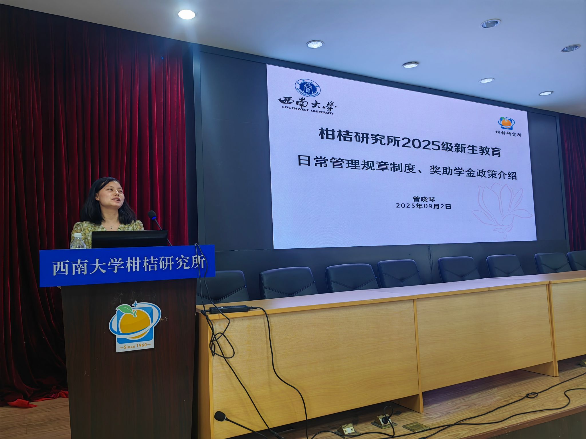 2025年9月2日下午,柑桔研究所2025级研究生新生见面会暨入学教育在综合楼六楼会议室顺利召开。所领导、导师代表、所研究生工作办公室成员、高年级研究生代表以及2025级全体研究生共同参与。会议由所党委副书记刘昭暾主持。