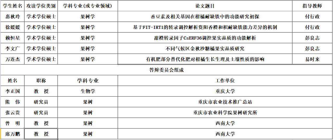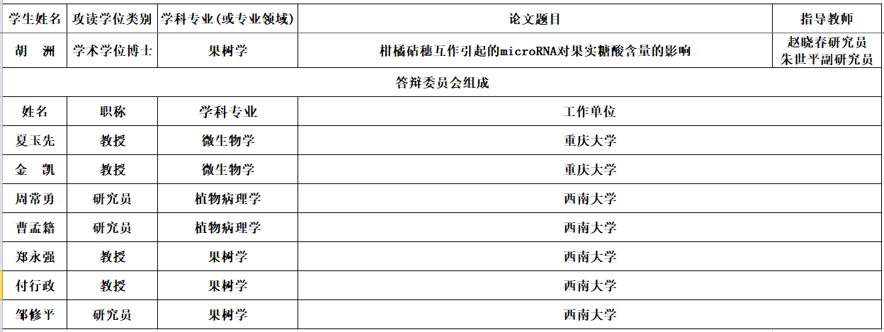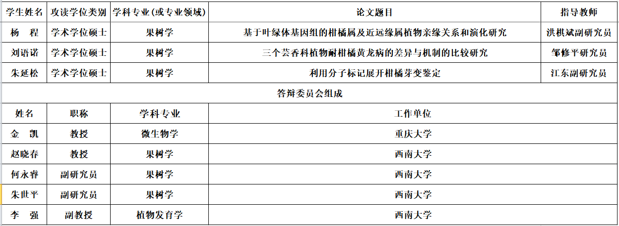 答辩地点:柑桔研究所大田坝会议室