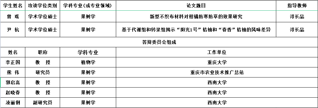 答辩地点(线上线下结合):柑桔研究所综合楼二楼会议室,腾讯会议号661-565-201