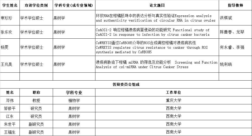 • 果树学2023年春季学期学位论文答辩安排公告(1)