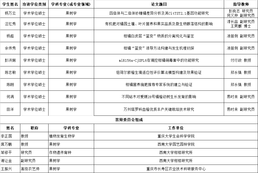 • 果树学2023年春季学期学位论文答辩安排公告(2)