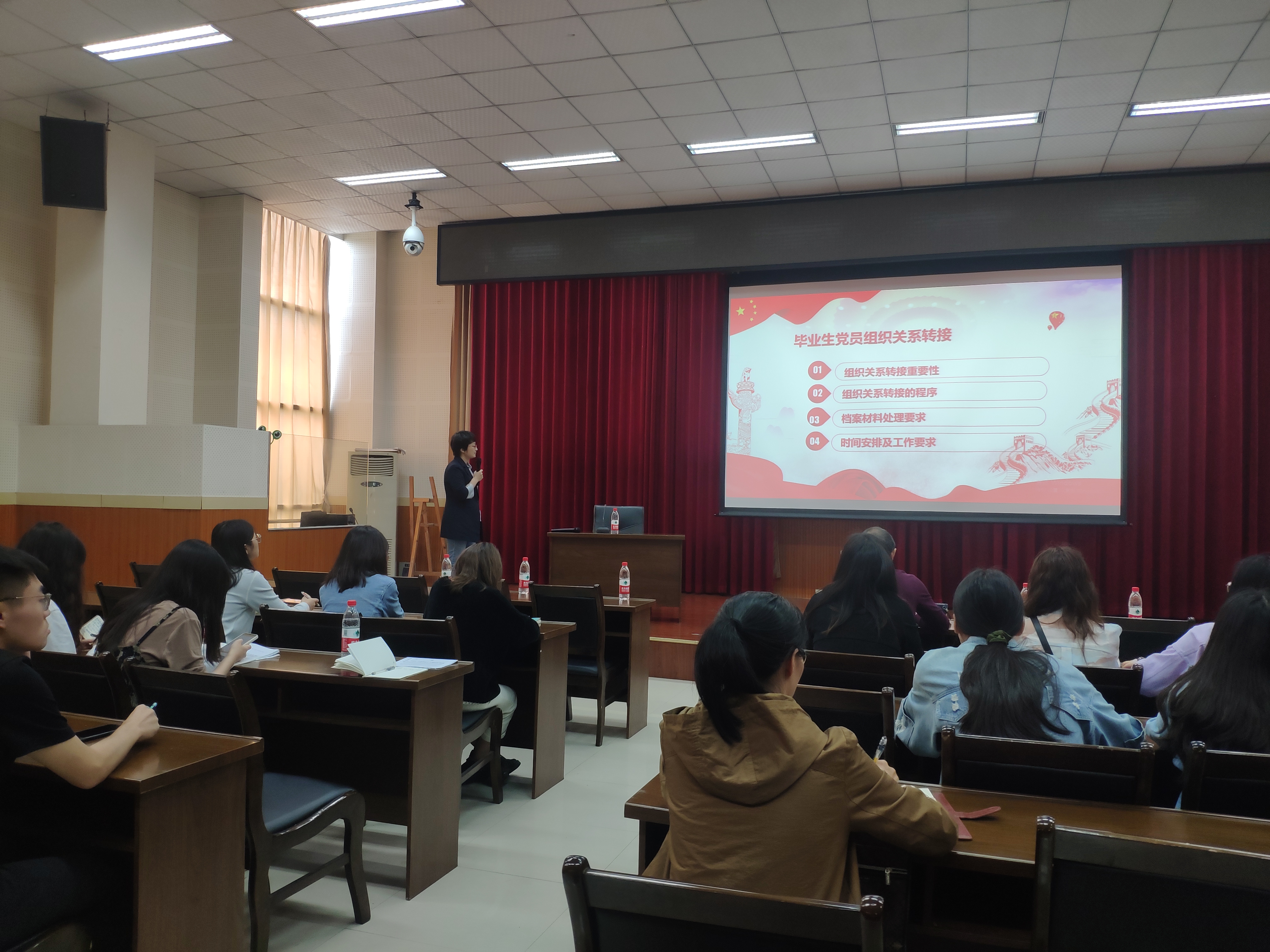 组织员常青华为毕业生党员作组织关系转接专题培训,让大家认识到组织关系的重要性,让大家时刻牢记党员身份,在毕业生文明离校过程中和走向社会后,充分发挥党员的先锋模范作用,不忘初心、牢记使命,砥砺前行。