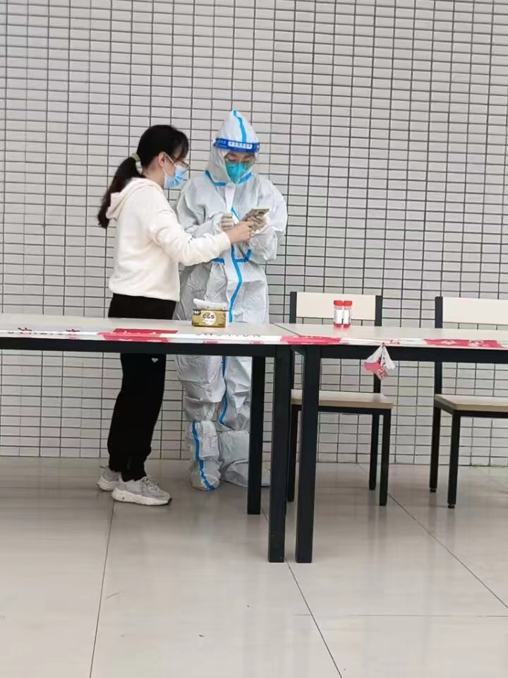 11月15日,为减少所内学生感染风险,保障学生安全,经所领导的努力协调,所内单独设了一个核酸检测点。作为所研究生公寓的楼栋长,我和几位楼层长在曾晓琴辅导员和刘昭暾副书记的统筹协调下,有序组织同学们高效的完成核酸检测。看着同学穿上防护服的那一刻,我更清楚的意识到在这个全民抗疫的特殊时期,新一代的青年人已经扛起了责任和担当。疫情还未结束,坚守仍在继续!冬天已经到了,春天必然也不会太远,疫情结束我们相约去烫火锅呀!