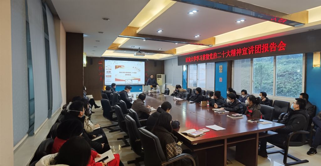 为深入学习贯彻党的二十大精神,引导广大师生员工把思想和行动统一到党的二十大精神上来,根据《中共best365英国体育在线委员会关于开展学习贯彻党的二十大精神宣讲工作的通知》精神及学校统一部署,12月29日上午,我所开展学习贯彻党的二十大精神宣讲团报告会,特别邀请了学校党的二十大精神宣讲团成员、培训与基础教育管理处尹晓东处长来所宣讲,所党委书记谭志友主持报告会。报告会以线上、线下相结合的方式开展,所两委委员、党支部书记及支委、在岗的行政科室人员等在所大楼二会议室、其他教职工通过腾讯会议分别在线下、线上听取宣讲。