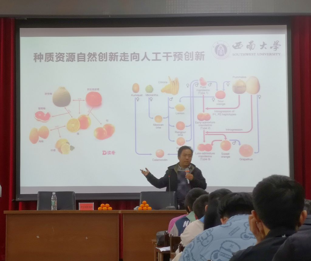 曹立研究员向大家详细介绍了自己研发的品种以及创制历程,指出柑桔产业存在着极高的国际竞争力,一定程度上影响到国家形象,作为育种人,投身柑桔新品种的研发和推广刻不容缓。