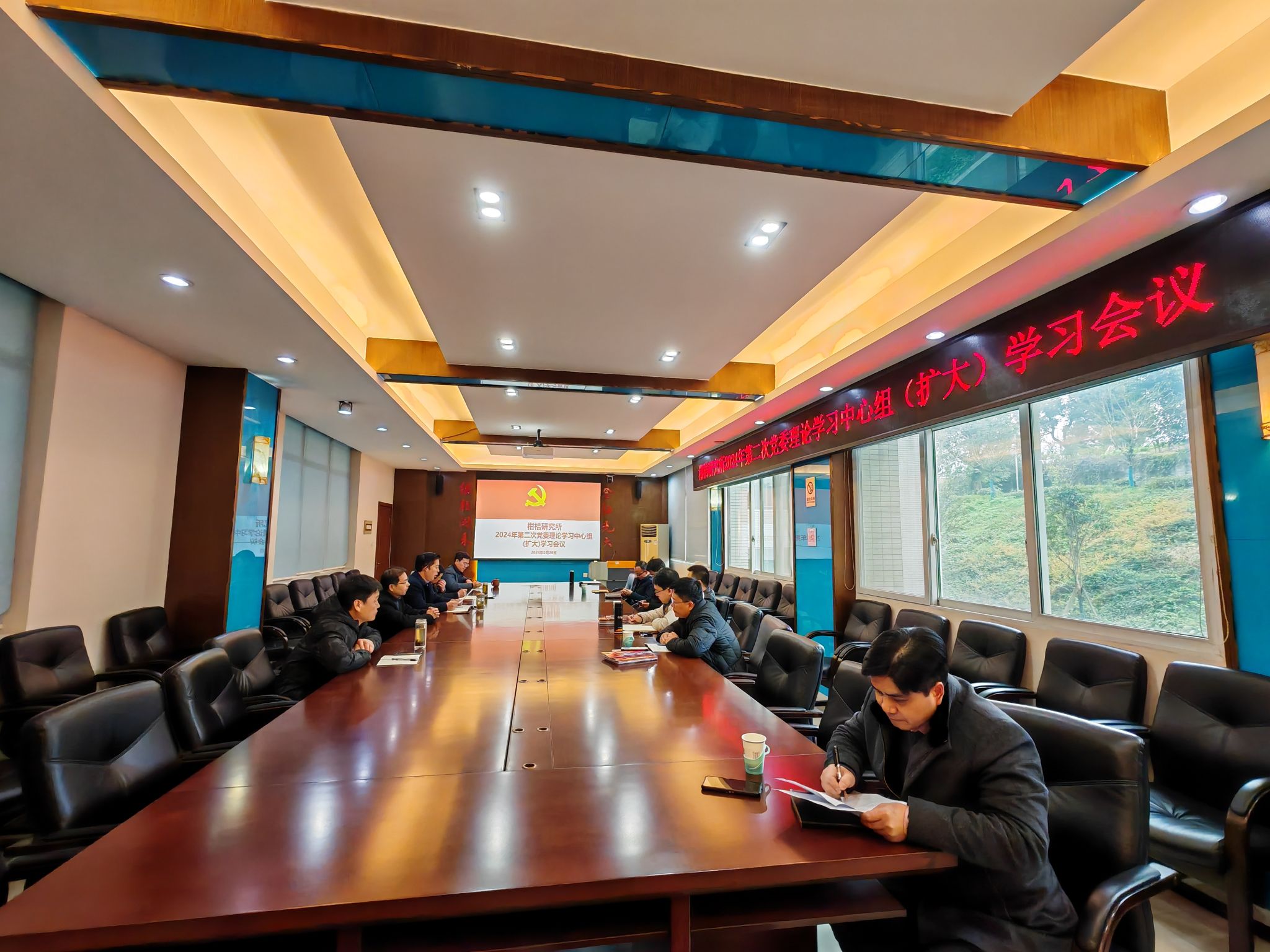 2月28日,我所在综合大楼二会议室,召开2024年第二次党委理论学习中心组(扩大)学习会,所党委书记谭志友主持会议,所领导、所党委委员、纪委委员参加学习会。