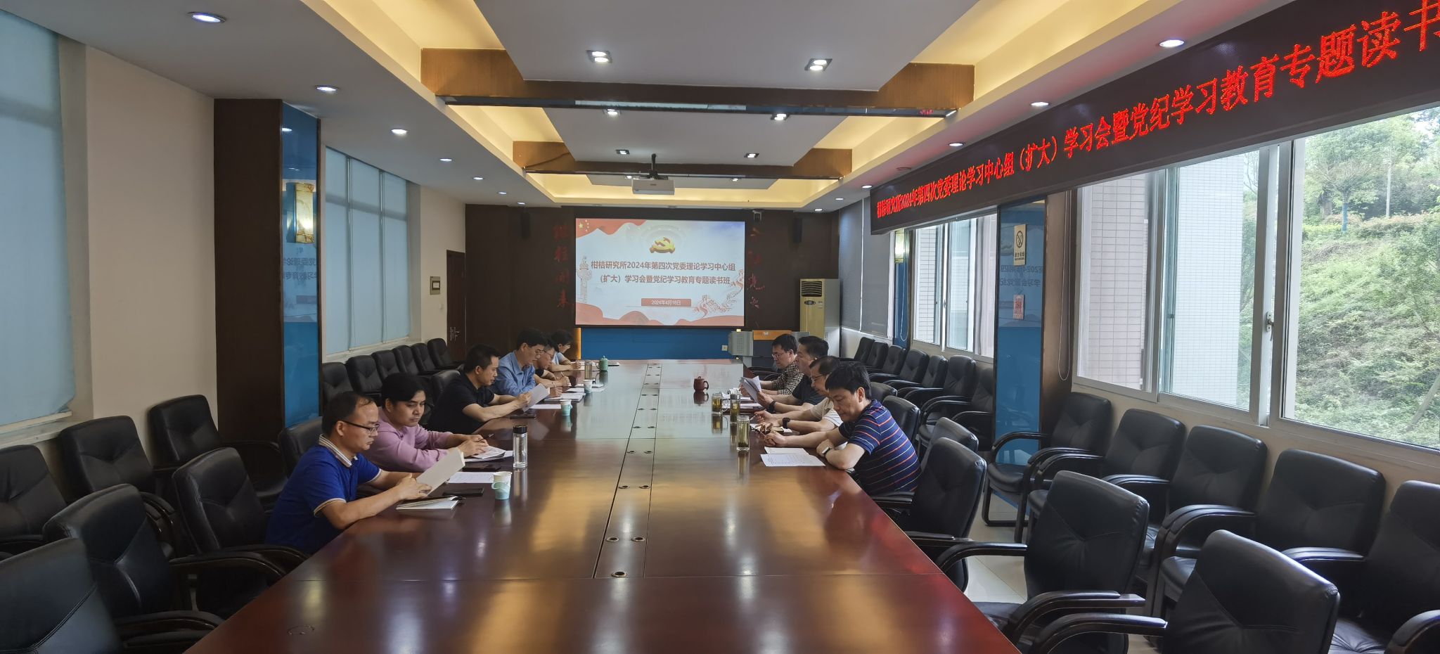 4月18日下午,所党委召开第四次理论学习中心组(扩大)学习会暨党纪学习教育专题读书班第1次学习会,所领导、两委委员参加学习。