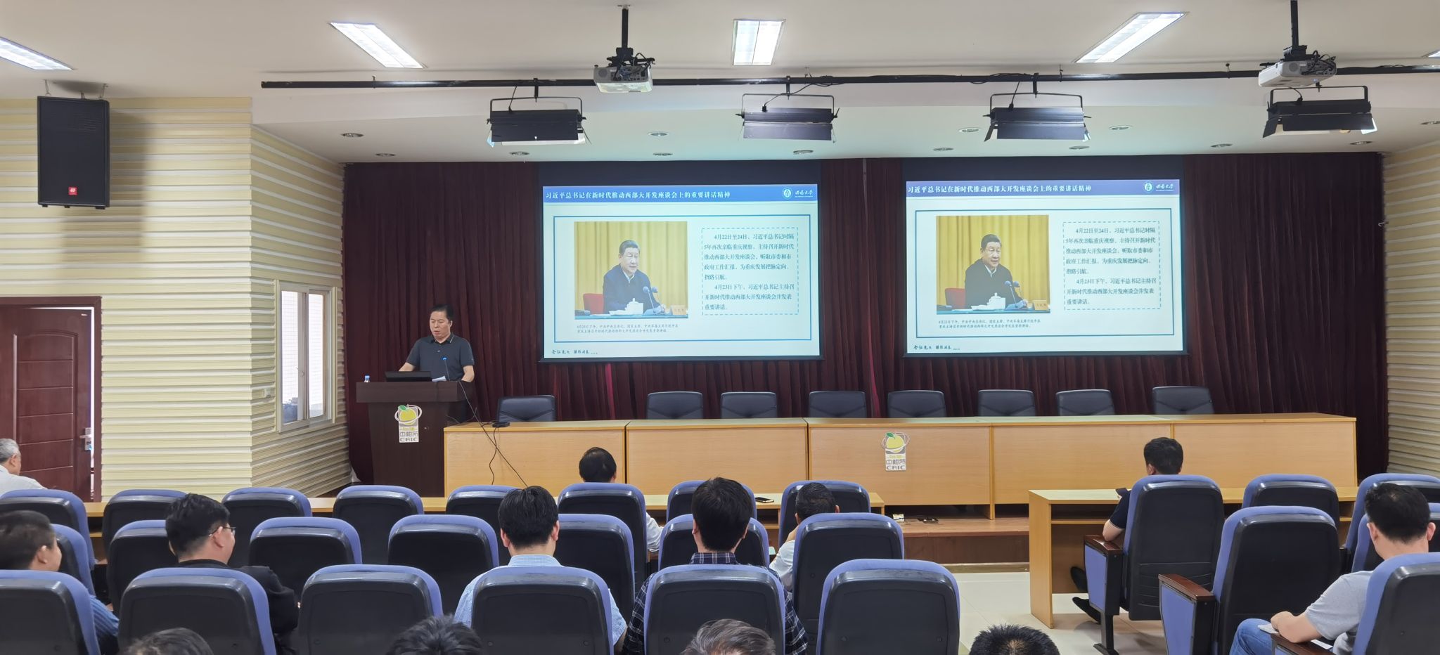 5月10日下午,我所在综合大楼六楼会议室,开展2024年第四次教职工政治理论学习,所党委书记谭志友主持学习会,全所教职工参加会议。