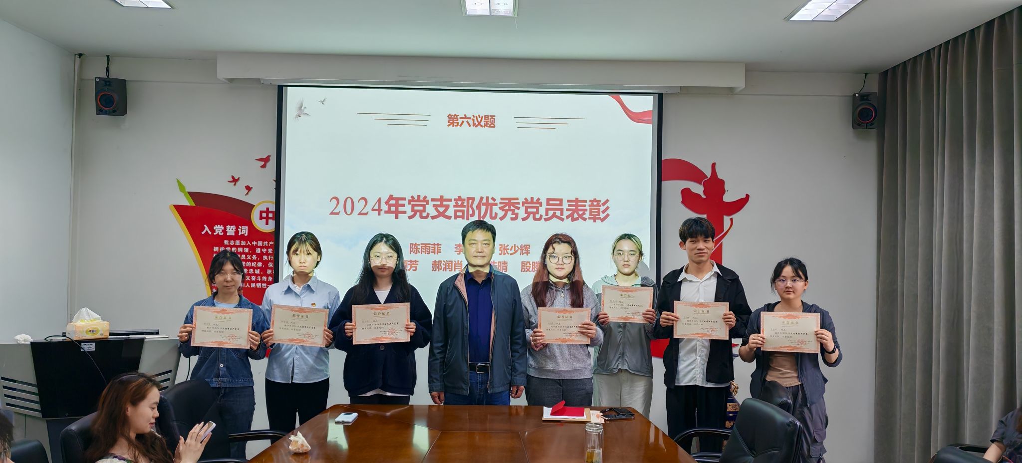 会上,表彰了党支部2024年度优秀共产党员李佳欣、张少辉等,并颁发了奖状,为1位党员过政治生日。