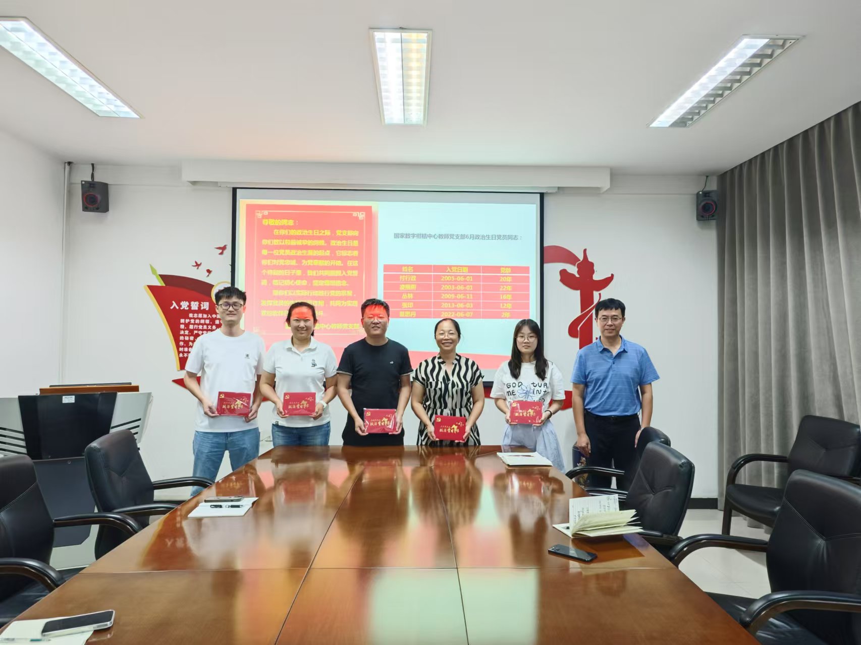 会议还部署了后续的工作安排,包括传达上级党组织深入推进学习教育的要求,研究党支部深入贯彻中央八项规定精神学习教育的具体举措,并对党员提出了明确的行为规范要求。最后,还举行了一个简短而庄重的政治生日仪式,支部党员付行政、凌丽俐、丛林、张印和夏思丹等同志回顾了入党历程,勉励党员同志以实际行动践行党的宗旨,发挥党员的先锋模范作用,共同为实现党的宏伟目标而努力奋斗。