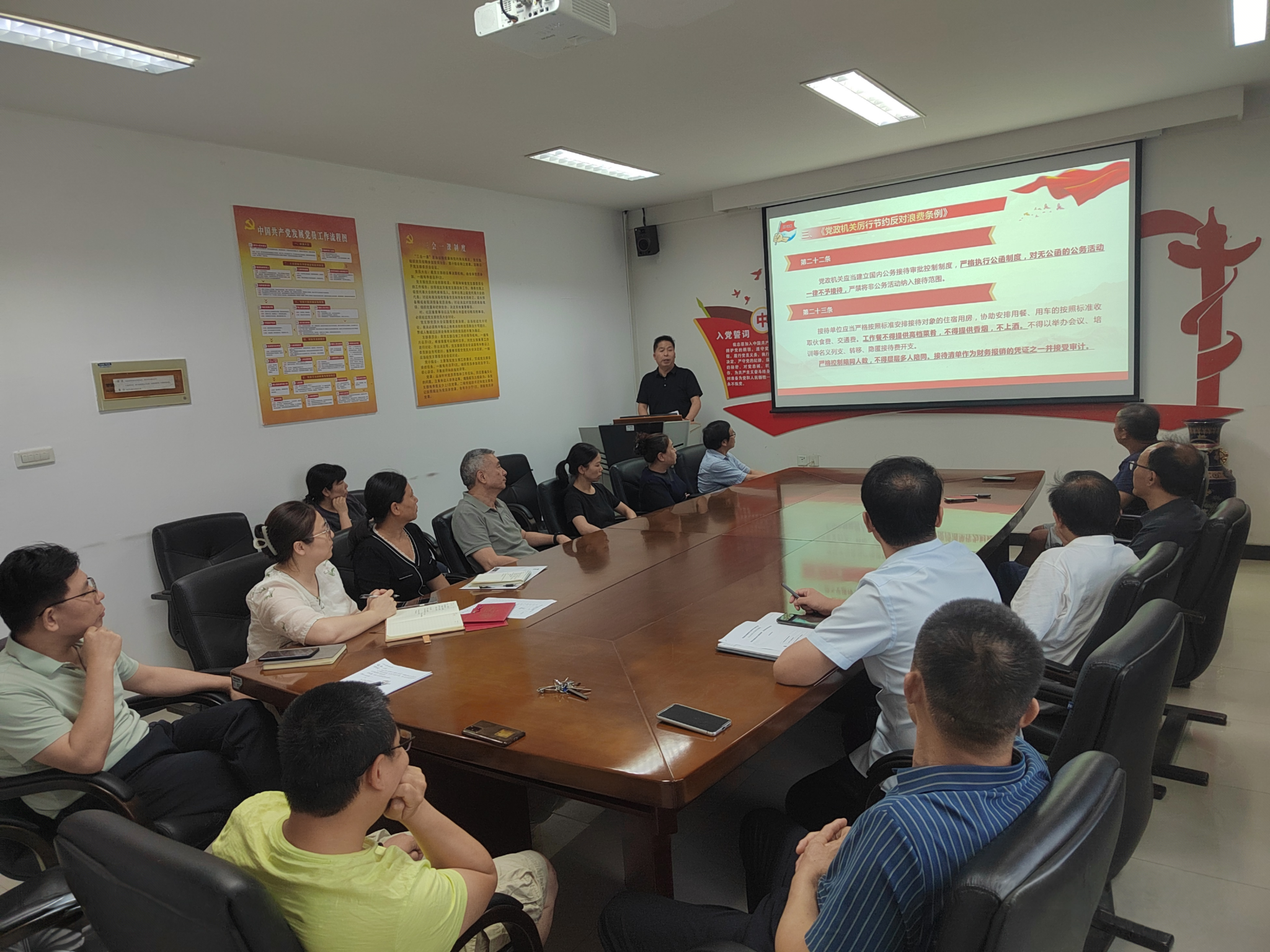 谭志友书记首先通报了全国纪检监察机关累计查处违反中央八项规定精神的问题数量和职级情况,随后带领大家重温了“八项规定”的主要内容,结合案例讲解了违反中央八项规定精神的主要表现,领学了中共中央、国务院新修订的《党政机关厉行节约反对浪费条例》,解读了违反规定适用的相关党纪条规。谭志友讲到,我们要充分认识学习教育的重要性和紧迫性,做到锲而不舍贯彻中央八项规定精神,推动党的作风持续向好,推动党中央各项决策部署落到实处,为推进中国式现代化贡献智慧和力量。