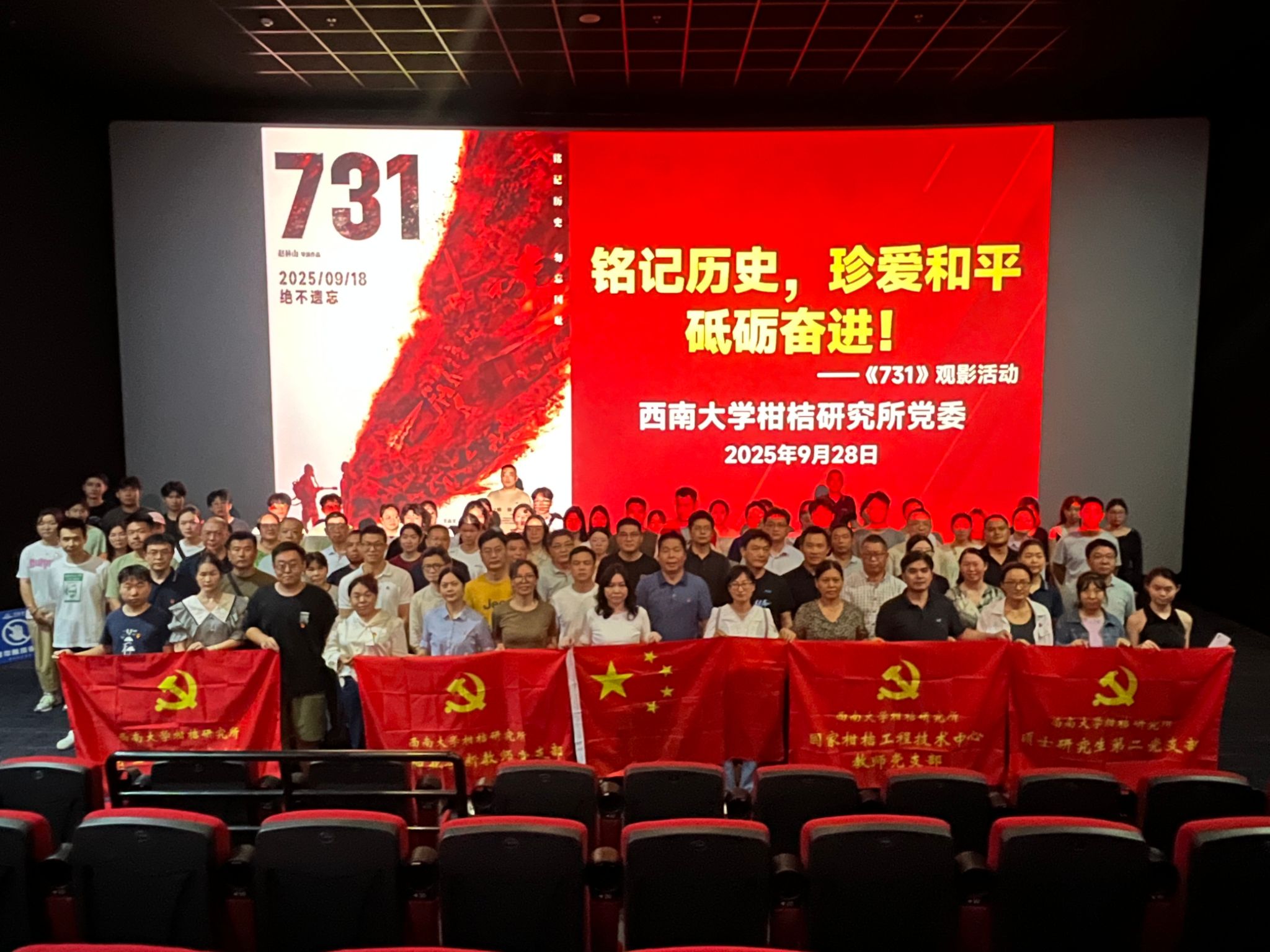 在纪念中国人民抗日战争暨世界反法西斯战争胜利80周年的重要历史时刻,为缅怀先烈,弘扬伟大抗战精神,9月28日下午,所党委组织100余师生党员及入党积极分子开展“铭记历史 珍爱和平 砥砺奋进”集中观看爱国主义教育影片《731》活动。