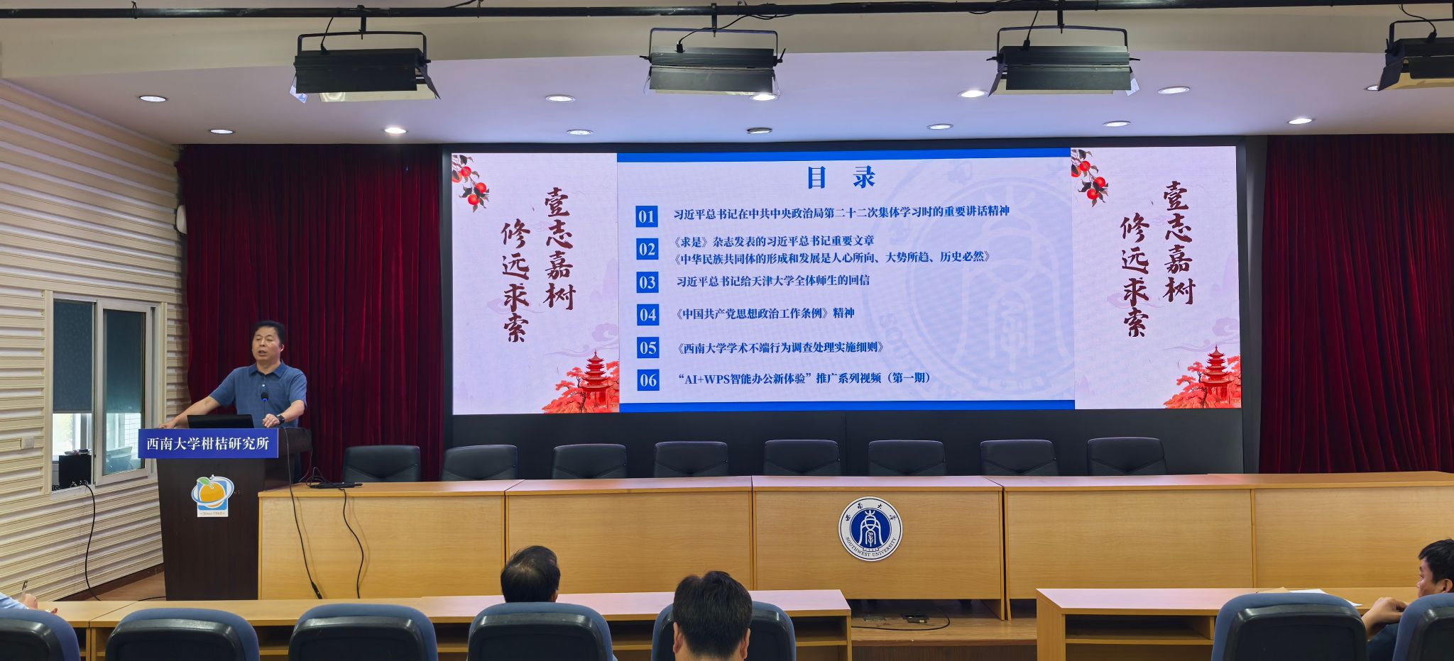 10月10日下午,根据学校统一部署,结合我所工作实际,我所在综合大楼六会议室开展了2025年第九次教职工政治理论学习,学习会由所党委书记谭志友主持,全体教职工参加。