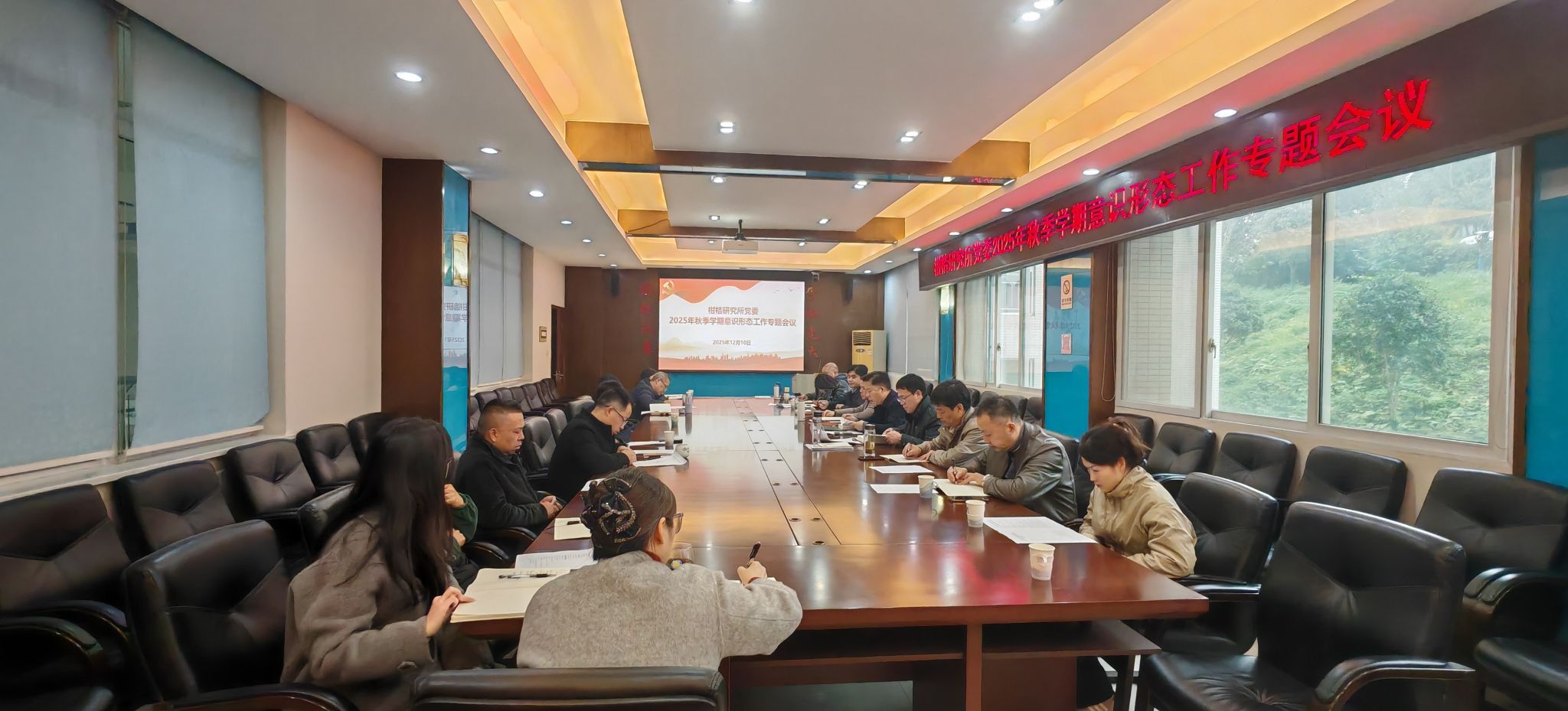 为强化意识形态工作,全面落实学校党委决策部署,分析研判当前形势,压紧压实工作责任,2025年12月10日上午,我所在综合楼二会议室组织召开了2025年秋季学期意识形态工作专题会议。所领导、两委委员、各党支部书记、民主党派负责人、各中心主任、科室负责人以及团学工作负责人等参加了会议。会议由所党委副书记、纪委书记刘昭暾主持。