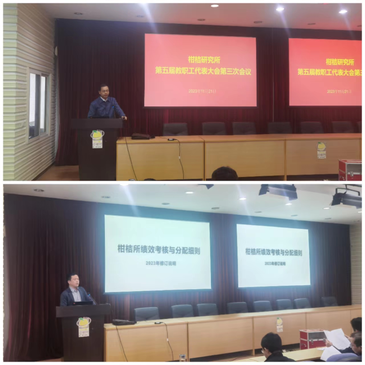 本次大会专题审议《best365英国体育在线柑桔研究所绩效考核与绩效工资分配实施细则》、《best365英国体育在线柑桔研究所2023年岗位聘用实施细则》的修订稿,并民主投票表决,希望进一步优化绩效考核和绩效工资的分配制度,以及适合柑桔所的岗位聘用,激发全所教职工的工作热情。会议通过了计票人和监票人名单。