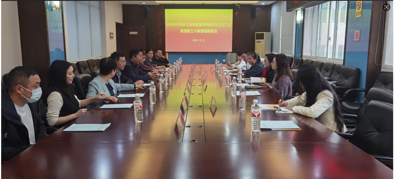 2024年10月31日上午,由重庆市教科文卫体工会二级调研员刘春艳、二级主任科员刘丹、校工会主席赵子华、副主席李玉兰、任四海及组织宣传科冉秦鸿科长等组成的专家工作组莅临我所,开展重庆市教科文卫体工会先进职工小家现场验收。所党委书记谭志友、副书记刘昭暾,所工会主席李晶及全体工会委员参加本次验收工作。