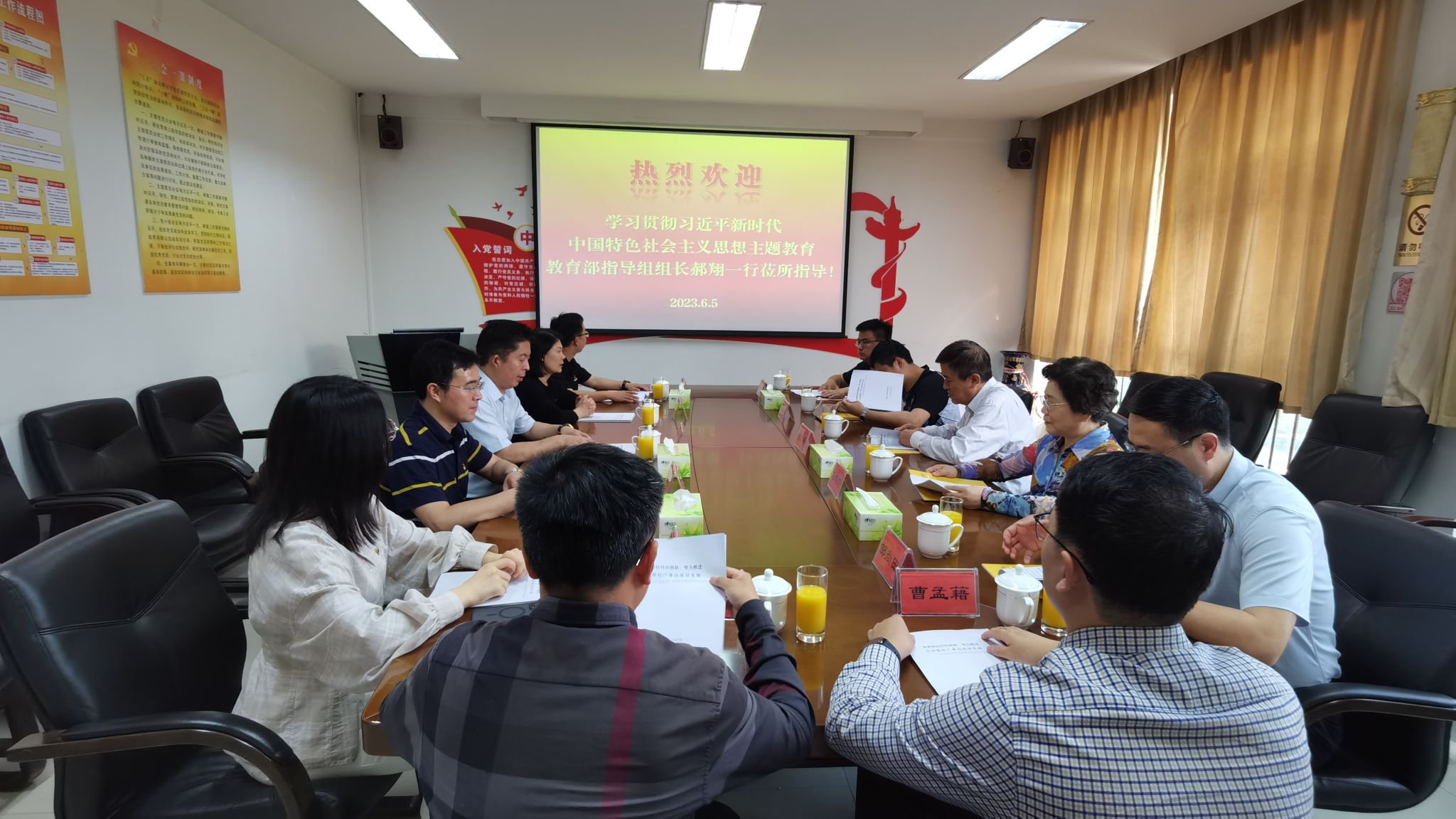 6月5日,以郝翔同志为组长、刘琪瑾同志为副组长的教育部直属高校主题教育第十巡回指导组一行5人,在党校办公室主任余小蓉等的陪同下,来所进行实地调研座谈。所党委书记谭志友陪同调研并参加座谈。