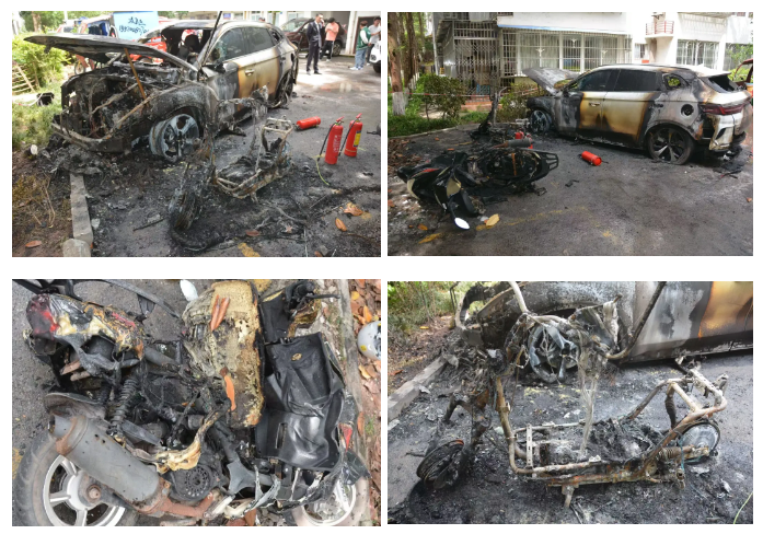 2025 年 4 月 23 日 1 时 14 分左右,北碚区和欣家园 11 栋旁电动自行车发生火灾,火灾烧毁 1 辆摩托车、1 辆比亚迪汽车、1 辆电动自行车,未造成人员伤亡。