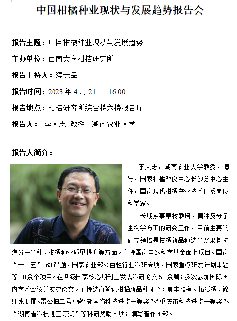 • 【学术报告】湖南农大李大志教授:中国柑橘种业现状与发展趋势