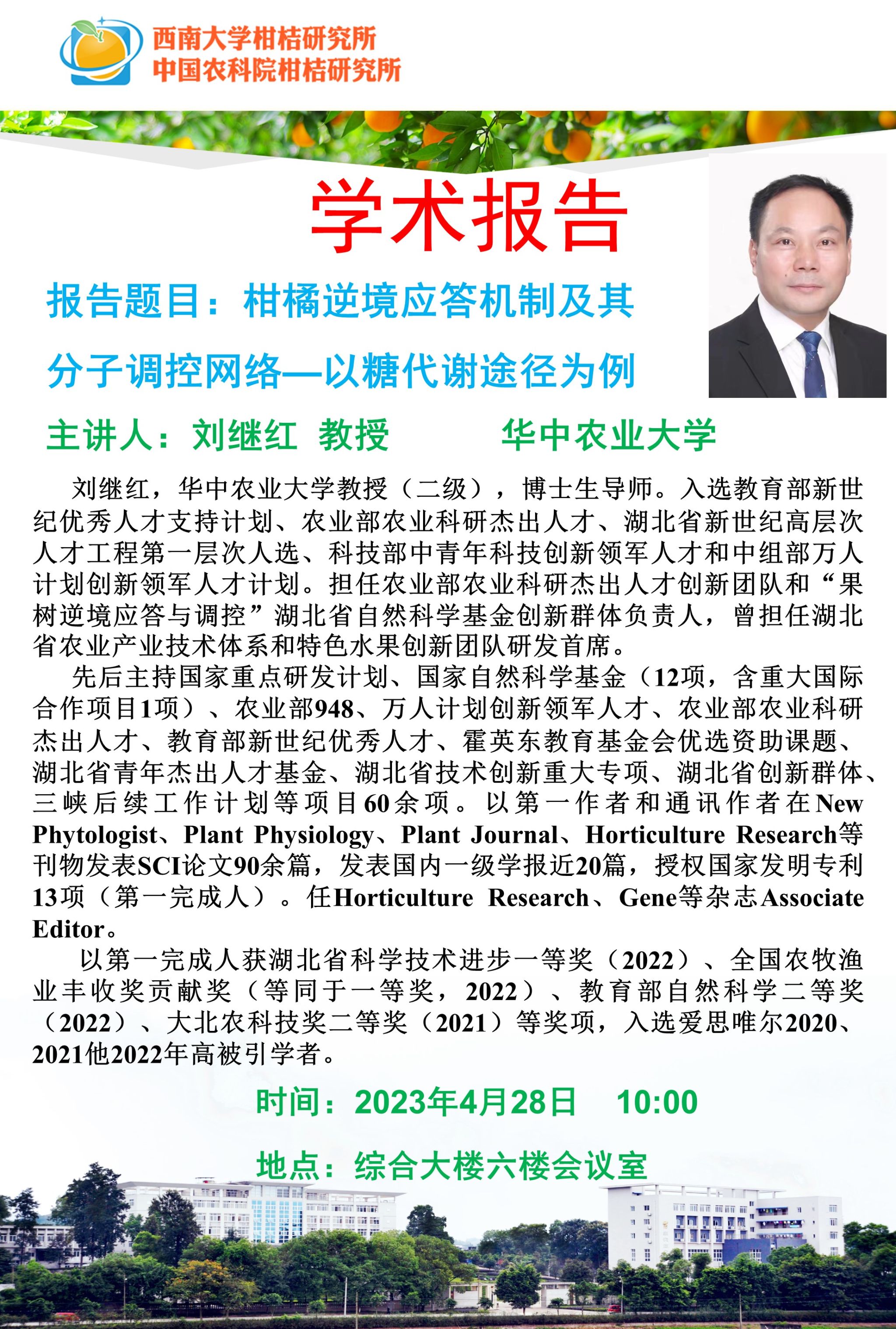 • 【学术报告】华中农大刘继红教授:柑橘逆境应答机制及其分子调控网络—以糖代谢途径为例