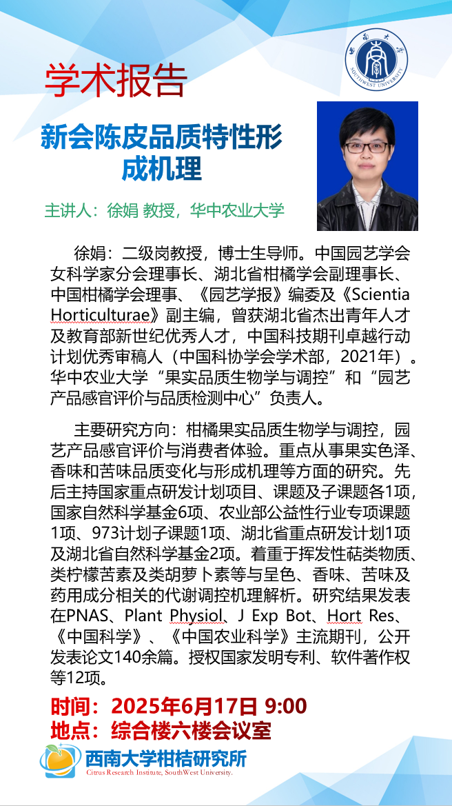 • 【学术报告】徐娟:新会陈皮品质特性形成机理