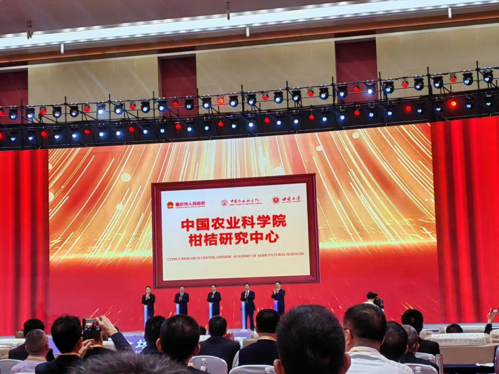 10月25日,中国农业科学院柑桔研究中心在2024重庆市食品及农产品加工高质量发展产业生态大会开幕式上揭牌成立。重庆市委副书记、市长胡衡华,重庆市副市长郑向东、江敦涛,中国农业科学院副院长叶玉江,学校党委书记张卫国同时按下启动按扭,成功为“中国农业科学院柑桔研究中心”揭牌。中国农业科学院科技局局长李新海、学校党政办公室主任靳拥军、科技处副处长段有德、柑桔研究所所长王雪峰,以及出席开幕式的嘉宾共同见证了这一重要时刻。