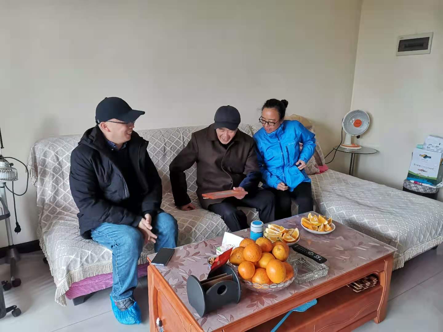 在歇马解放台社区养老服务中心,孙志洪主委一行拜访和慰问了黄良炉老师。黄良炉老师由于年事已高,腿脚不便,近期处于卧床休养状态,支部三位委员与黄良炉老师手拉手进行了亲切交谈,从他的言语神态中能感受到他对于委员们到来的开心与快乐。