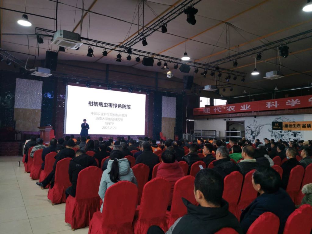 3月1日,胡军华应四川省武胜县柑桔种植业协会邀请再到武胜县产业园区开展科技培训和技术服务,参会技术人员和业主共380人次。通过图文并茂、深入浅出地讲课,技术人员和果园业主充分了解了春季柑桔生长特点和病虫害防控要点。培训会后胡军华又到基地现场答疑解惑,回答了大家在生产中关注的难点热点问题,受到相关领导、技术人员和协会会员的好评。