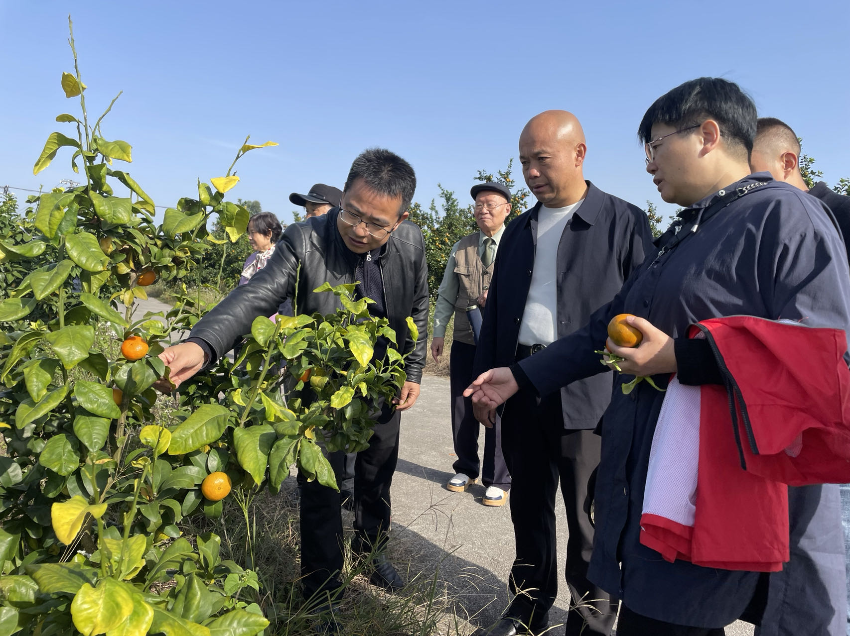 所党委研究生第二党支部书记申晚霞、科研开发管理教工党支部书记肖田、长寿区科技特派员刘小丰,北碚区大科园特色农业党支部书记晏承泉,九三学社重庆市长寿区委员会社员、长寿区农业技术科研服务中心特产站站长王振兴,长寿区柑桔行业协会会长、重庆杰冠生态农业开发有限公司总经理王文林一起参加了本次活动。