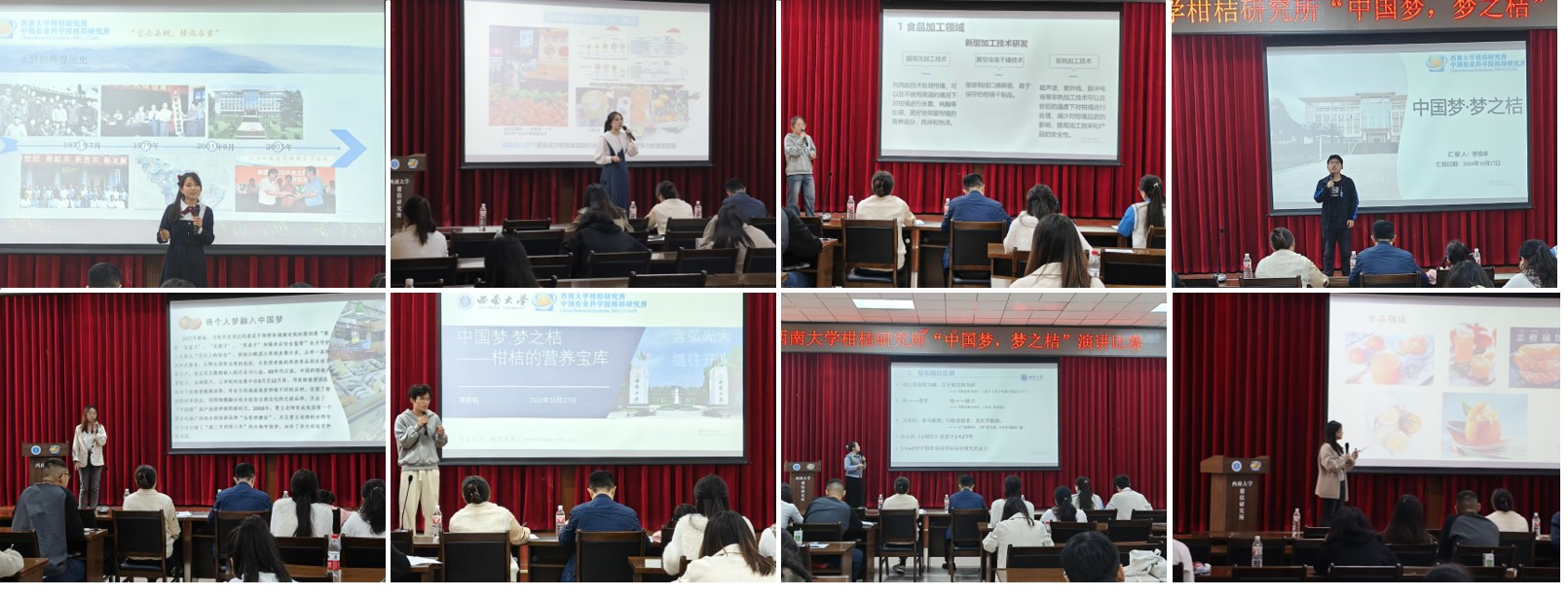 为了科普柑橘知识,宣传柑橘文化,并丰富同学们的学术视野与表达能力,我所于2024年10月27日在研究生公寓多功能厅举行了“橘苑青年说”系列活动之“中国梦 梦之橘”主题演讲比赛,受到了我所研究生的热情关注和积极参与。