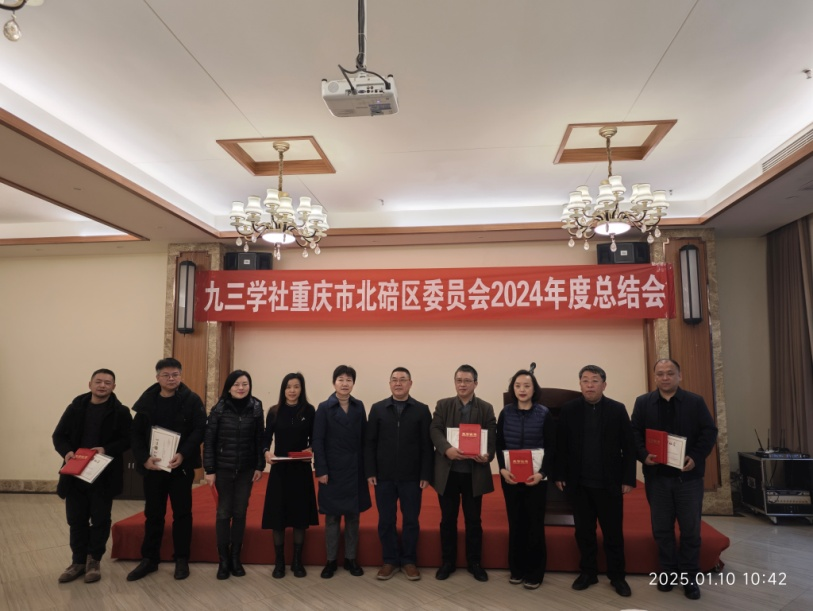 1月10日,九三学社北碚区委员会召开2024年度总结会,通报了社北碚区委2024年度获九三学社重庆市委会表彰情况,表彰了社北碚区委2024年度社务工作先进集体和先进个人。