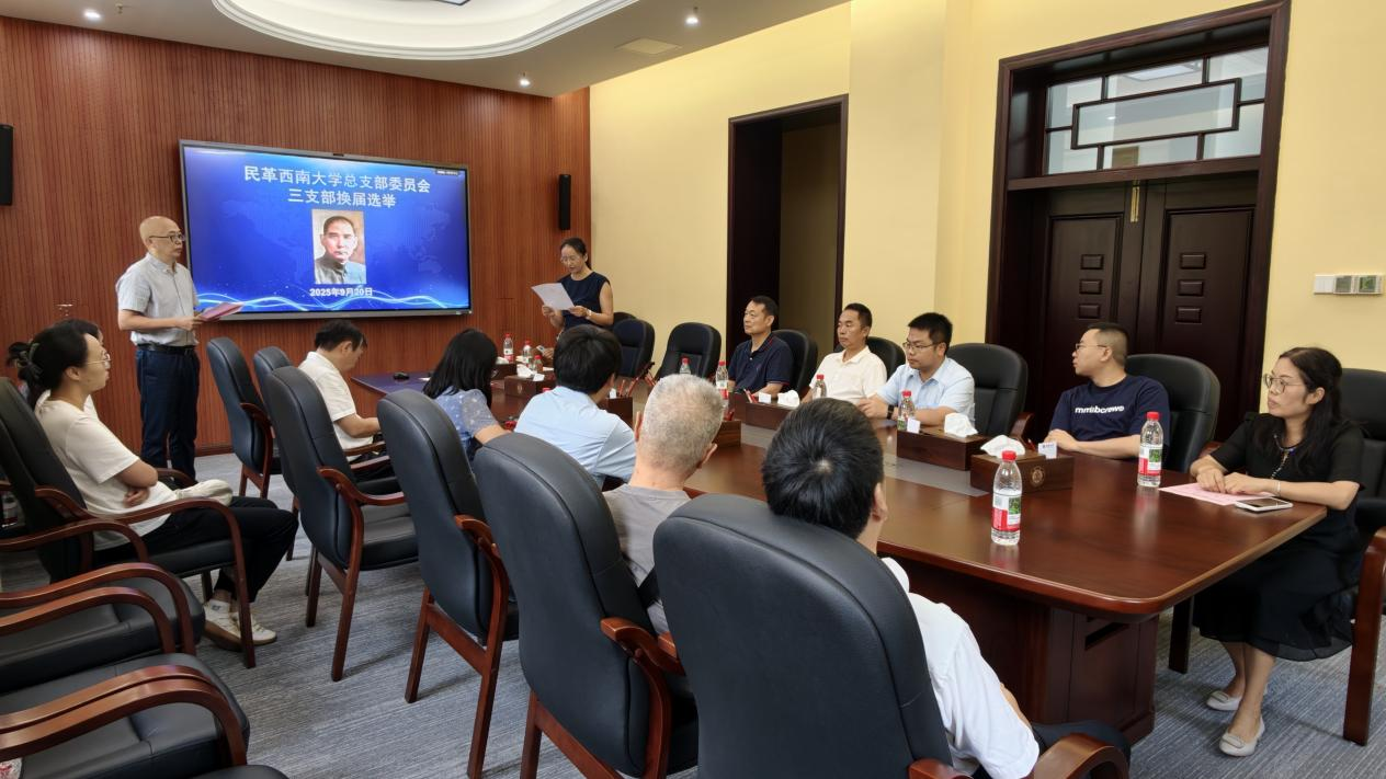 2025年9月20日上午,民革best365英国体育在线三支部换届大会在best365英国体育在线行署楼第八会议室举行。民革北碚区委会专职副主委洪玲、民革北碚区委会副主委王小燕出席会议并指导选举工作。会议由三支部主委孙志洪主持。