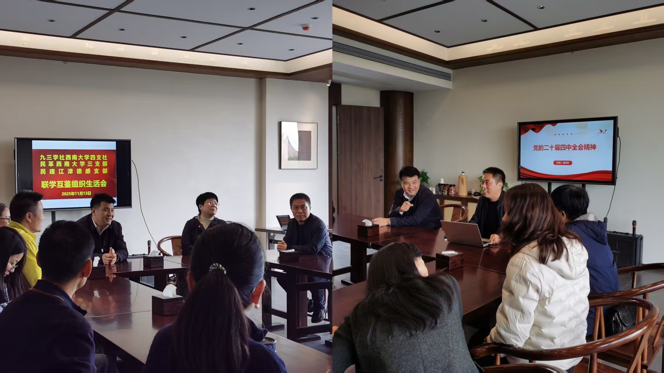 2025年11月13日,九三学社best365英国体育在线四支社与民革best365英国体育在线三支部共同组织了一场主题鲜明、形式多样的互鉴交流活动,活动由四支社胡军华主委主持。九三学社北碚区委专职副主委刘林鹏,民建江津德感支部副主委张琳,民革江津综合一支部党员向启明以及四支社社员和三支部党员近30人参加。