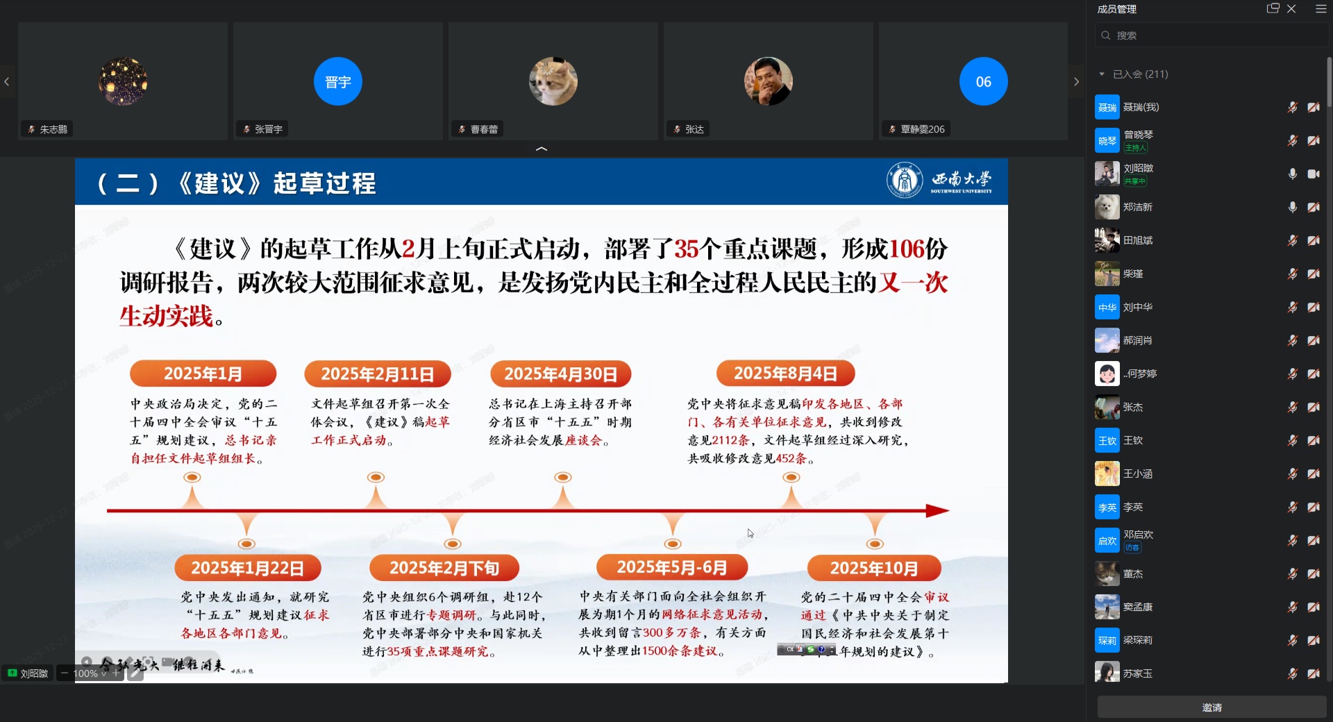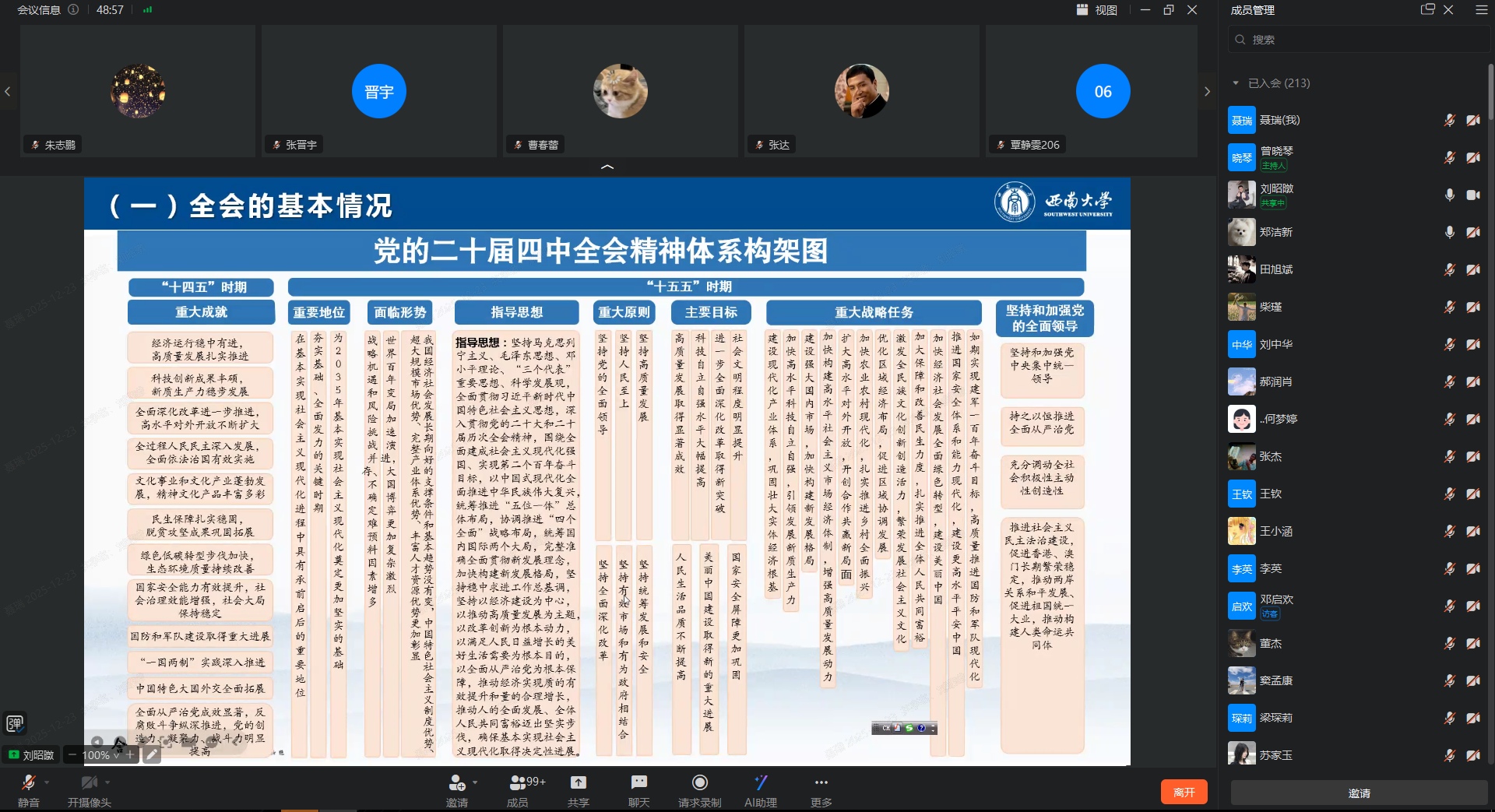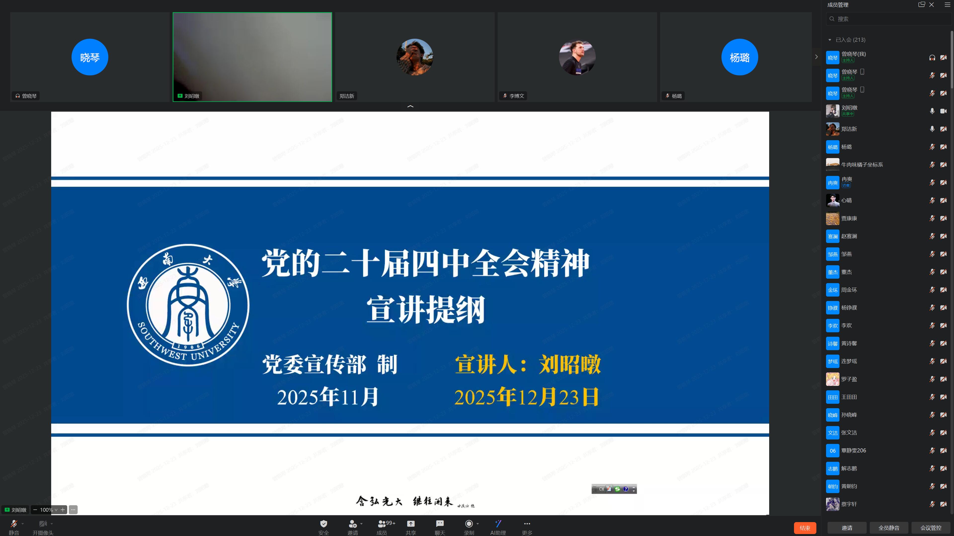 最后,刘昭暾副书记还介绍了党的二十届四中全会精神在重庆和高校层面的贯彻落实路径。他强调,高校作为人才培养的重要基地,肩负着为党育人、为国育才的重要使命。全体研究生要积极响应党的号召,增强安全意识,努力学习科学文化知识,提高自身综合素质,积极参与到高质量发展进程中,为实现中华民族伟大复兴的中国梦贡献“柑桔人”的智慧和力量。