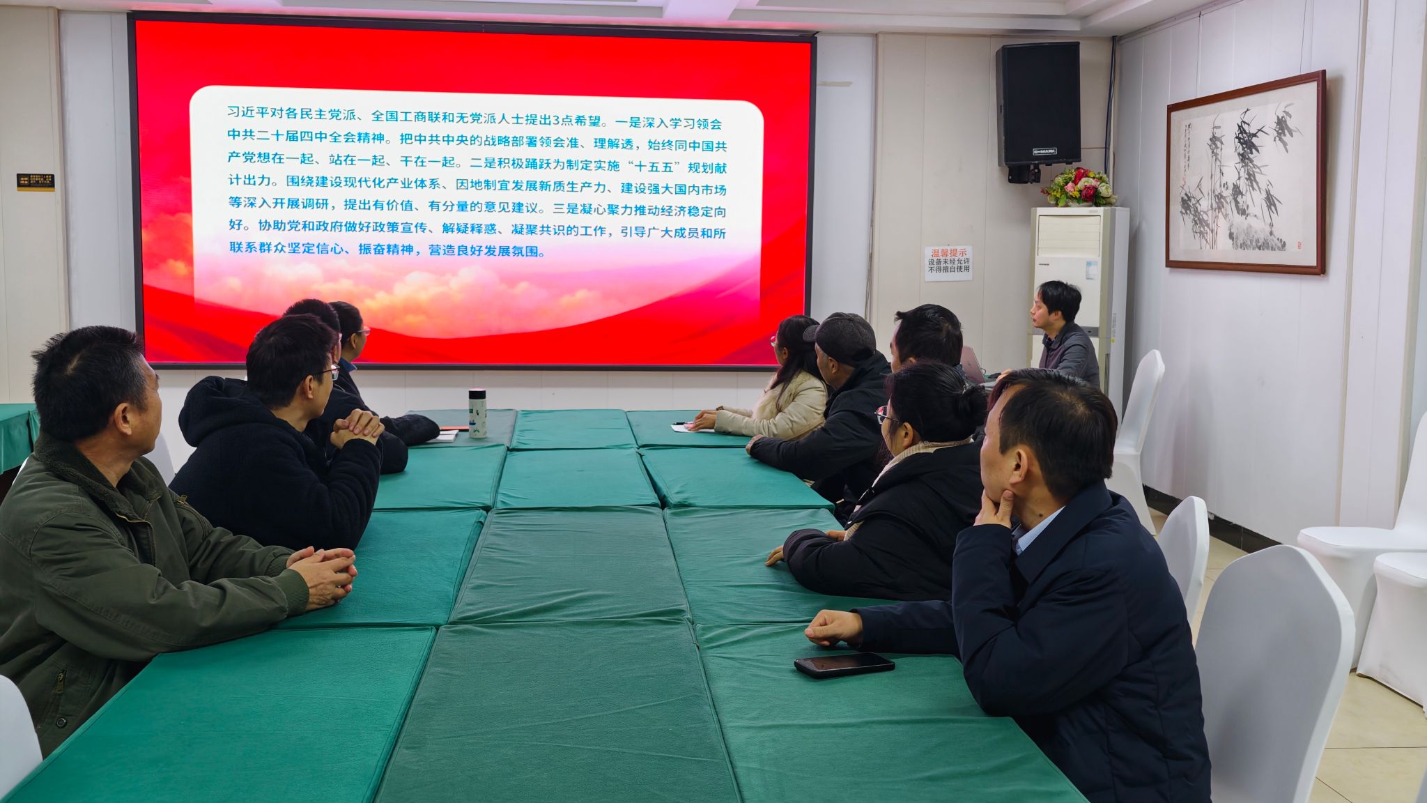 会上,三支部支委申光茂领学了中共中央召开的征求对经济工作的意见和建议党外人士座谈会会议精神,围绕今年经济形势研判、明年经济工作谋划部署及座谈会释放的核心要求等方面进行系统解读,并强调要把学习贯彻座谈会精神与深入领会中共二十届四中全会精神紧密结合,切实把思想和行动统一到党中央关于经济工作的决策部署上来。